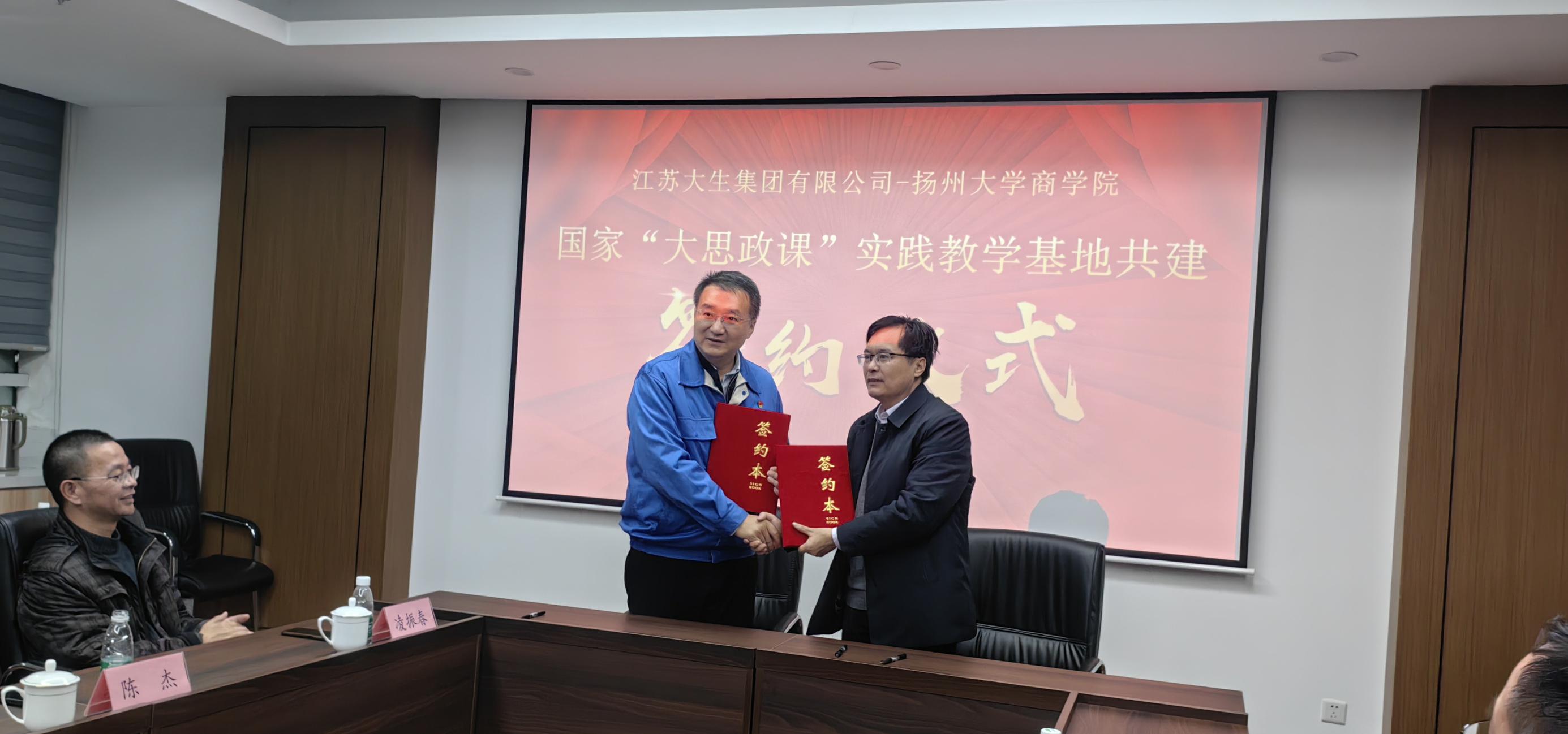 在签约仪式上,漆颖斌书记和李志斌院长代表双方签订了《扬州大学商学院“大思政课”实践教学基地协议书》,本着相互协作,各施所长,互补所需的精神,建立校企合作关系,致力打造特色“大思政课”品牌,并努力培养担当民族复兴大任的时代新人。