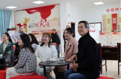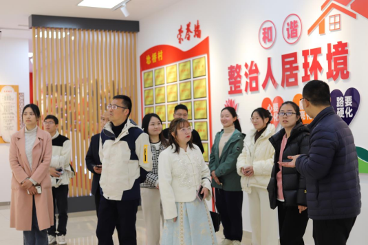 在埝桥村为民服务大厅,龚善为大家介绍了埝桥村党群服务中心的运行模式、功能发挥和服务内容;同学们认真观看了“一样的党群服务中心,不一样的埝桥幸福家”、“埝桥村书记带您看党群服务中心”特色宣传片。
