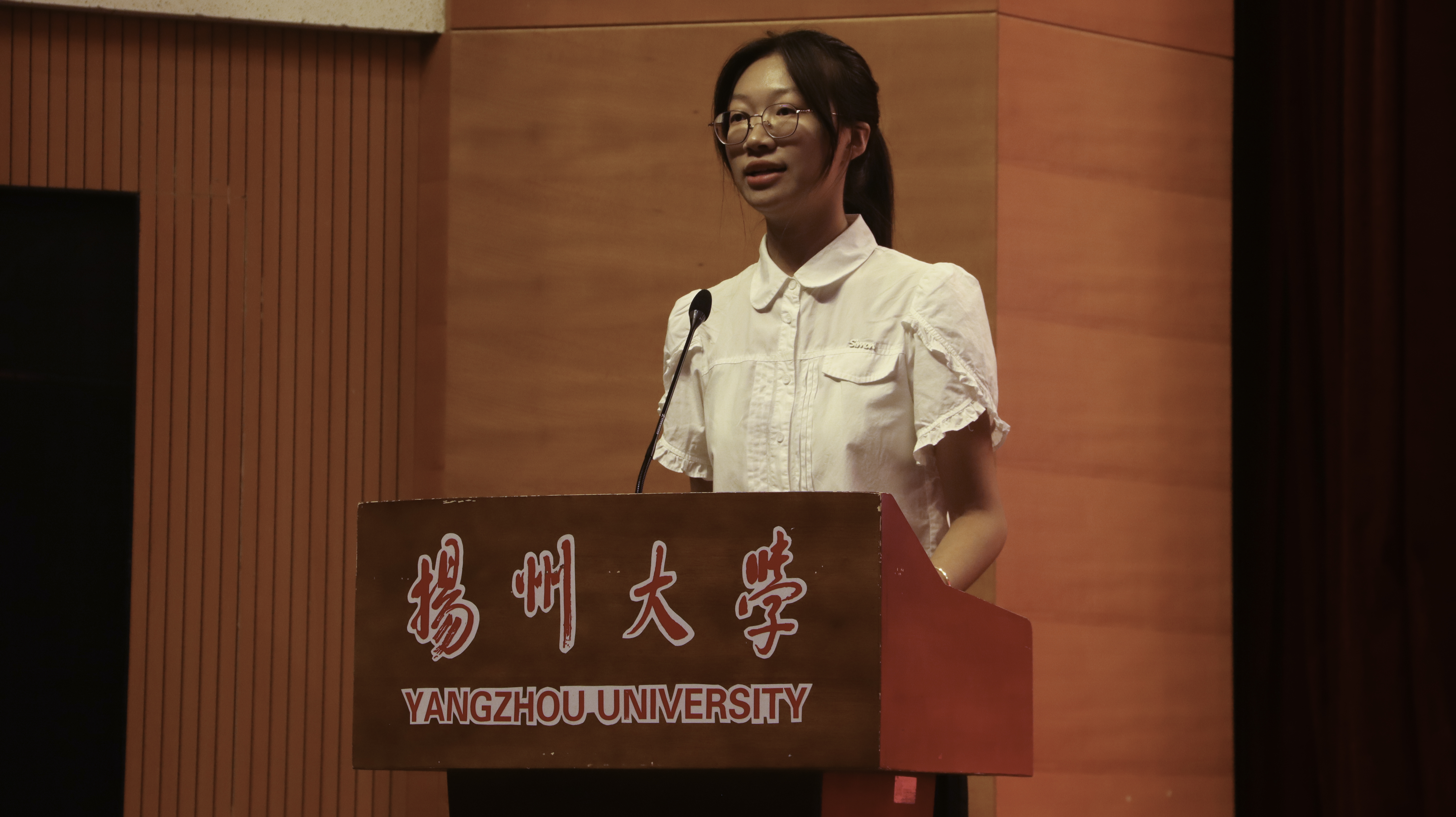 老生代表、院学生会执行主席缪奕涵同学结合自己的大学经历向新生分享大学生活和个人总结经验,她提出几点建议:一要做好合理规划,确定奋斗目标;二要学好专业知识,积极动手实践;三要培养兴趣爱好,助力全面发展。她希望同学们能够传承扬大“坚苦自立”的校训精神,弘扬“求是、求实、求新、求精”的校风,勤而行之、日有所进,成长为全面发展的时代新人,在青春的赛道上跑出当代青年最好的成绩。
